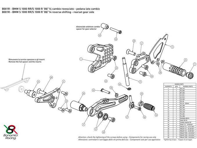 B001R - BONAMICI RACING BMW S1000R / S1000RR Adjustable Rearset (racing)
