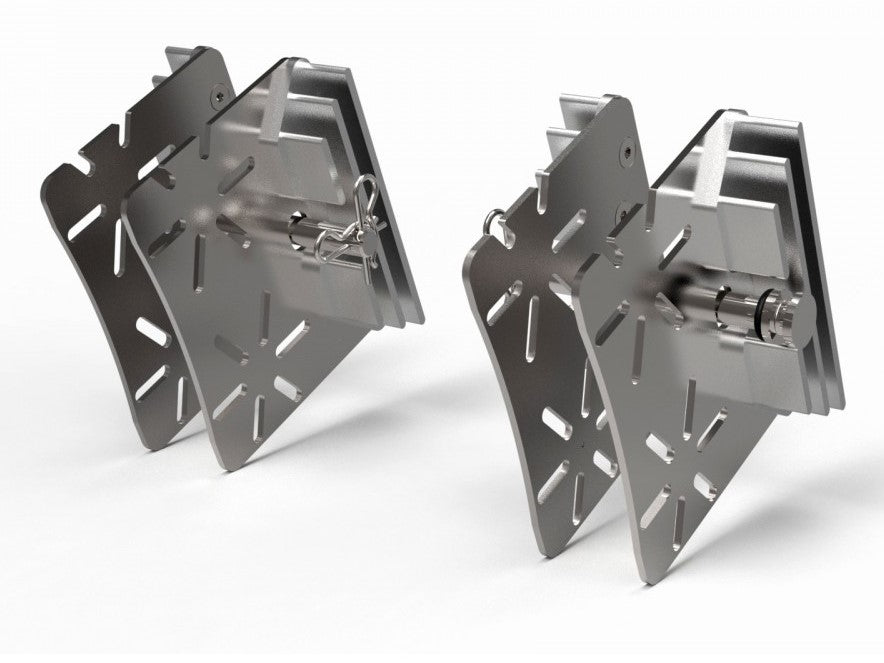 The project have been carried out after a year of testing and comparisons done right on track before the final version release. The heat sinks have been designed using two different metal elements to optimize the pad's thermal insulation by the caliper and the cooling thereof. The main body of the heat sink is made of thermal steel with a high degree of heat conductivity. The material is first laser cut and then CNC machined. The slots have two purposes: first is to reduce the contact surface, second - to release the hot air formed inside the brake piston cavity by reducing the hot chamber effect, as the propagation of heat in the piston and oil. The steel sink's main body is connected to a light alloy heat sink made of special aluminum with high thermal conductivity, which has the task of assisting the heat dissipation process.
