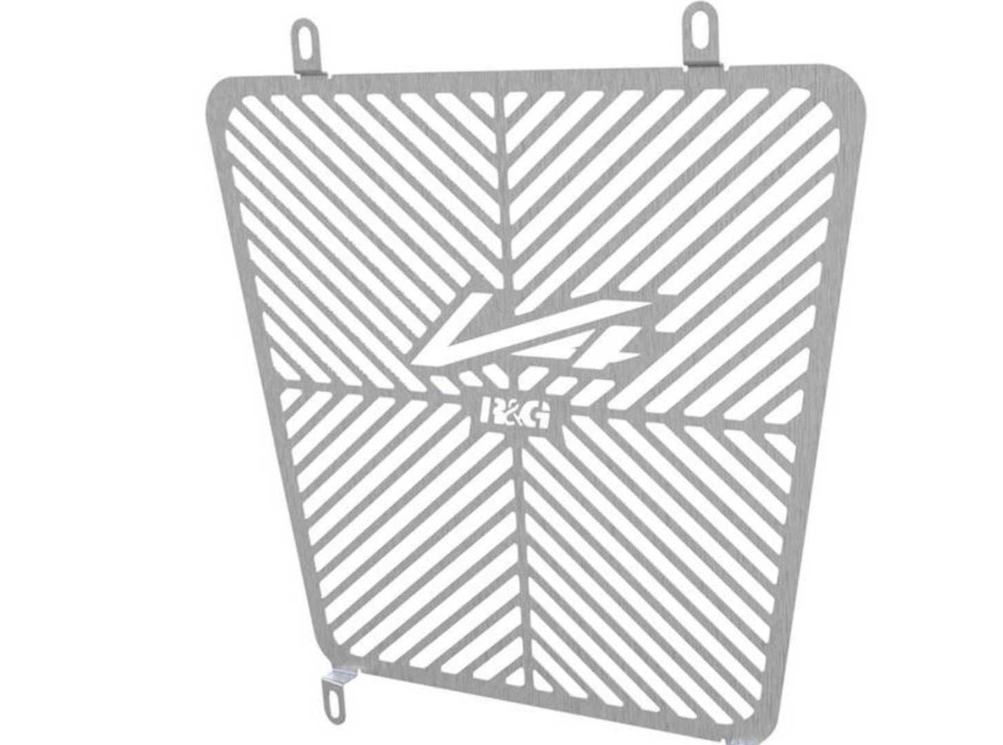 Branded radiator guard by R&G Racing for Aprilia RSV4 / Tuono V4.