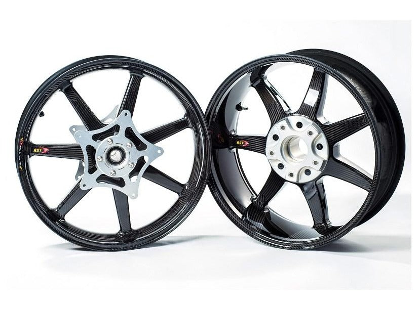 BST BMW K1300S / K1300R Carbon Wheels Set "Panther TEK" (front & conventional rear, 7 straight spokes, silver hubs)