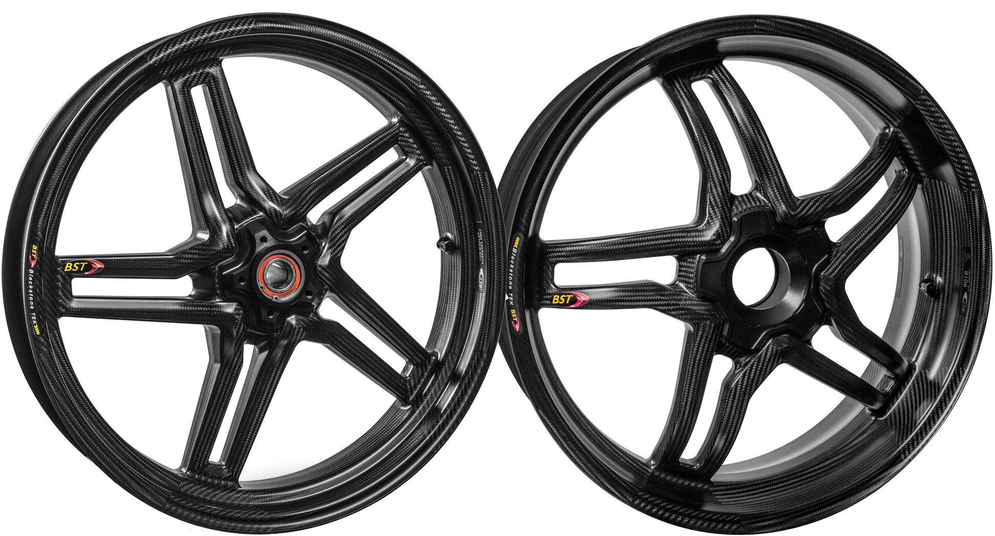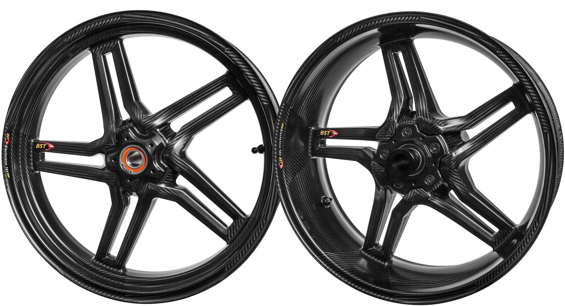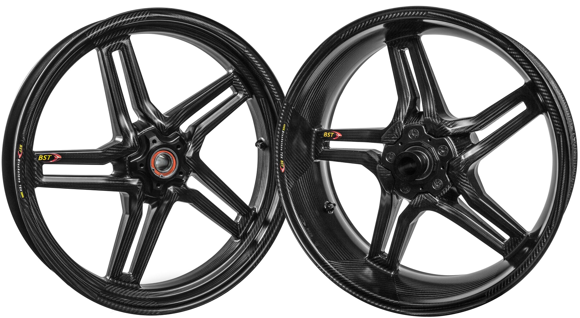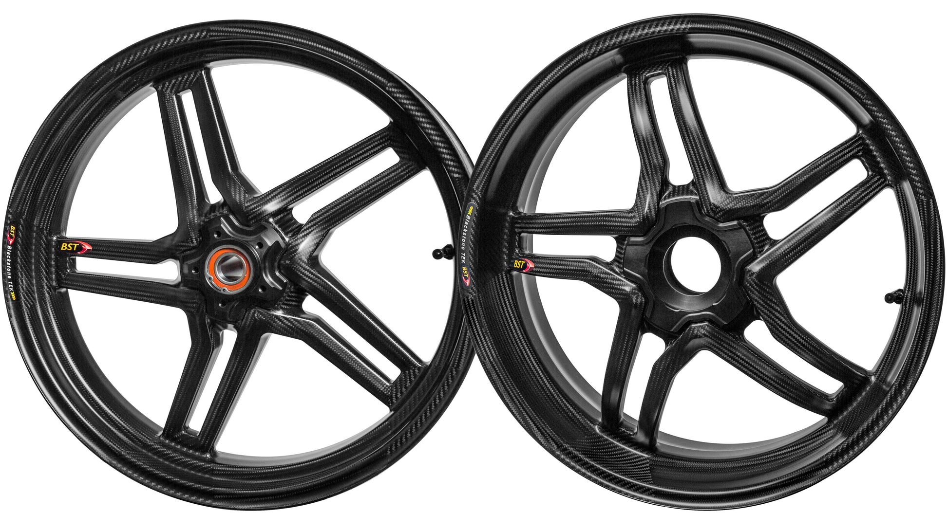 BST MV Agusta Dragster 800 Carbon Wheels "Rapid TEK" (front & offset rear, 5 slanted spokes, black hubs)