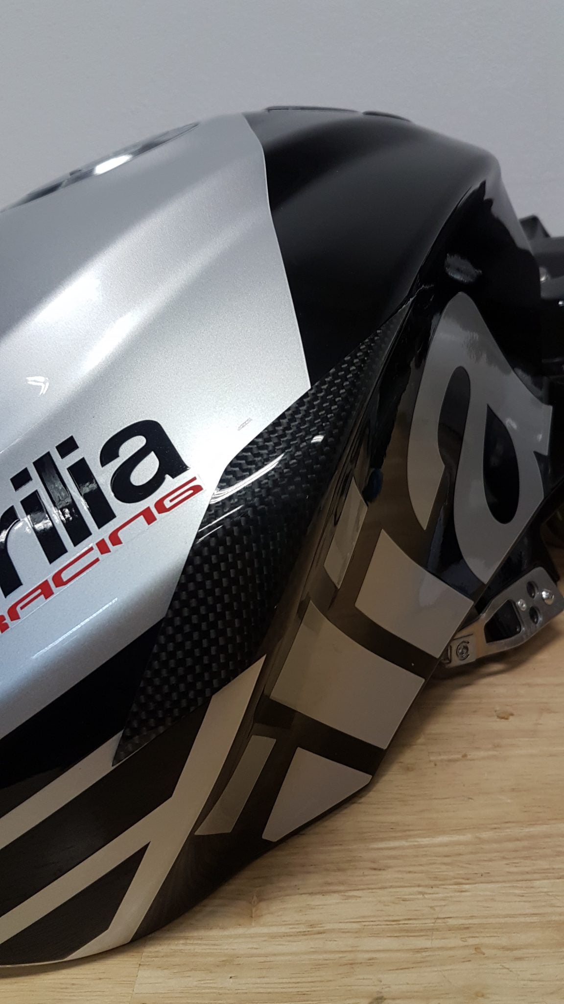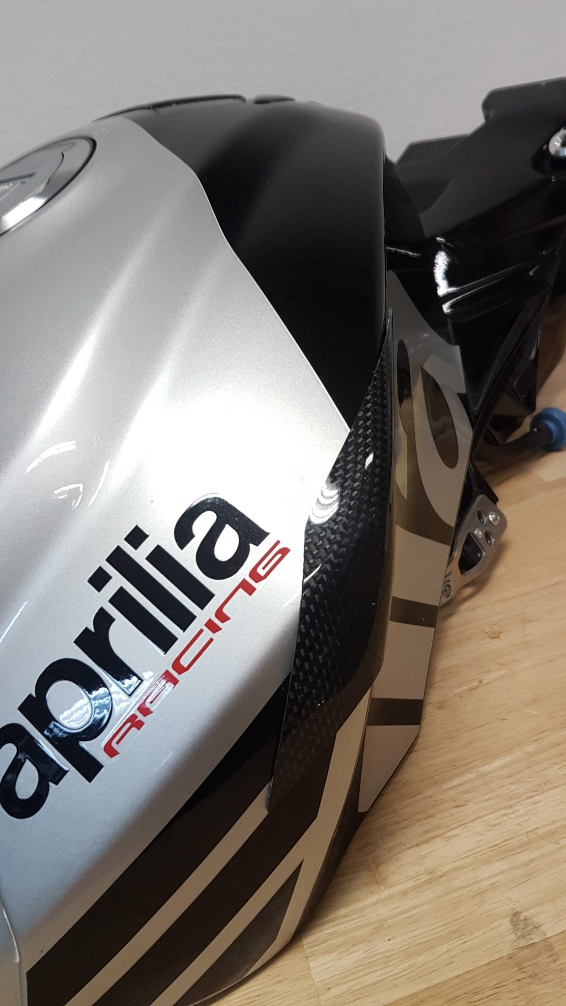 Carbon tank sliders for Aprilia RSV4 by Carbon2Race.