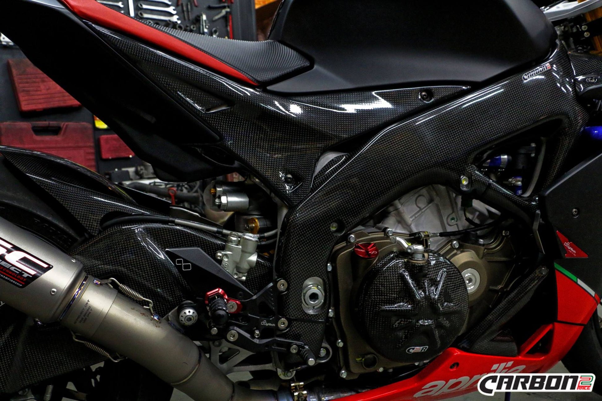 Carbon side tank panels for Aprilia RSV4 by Carbon2Race.