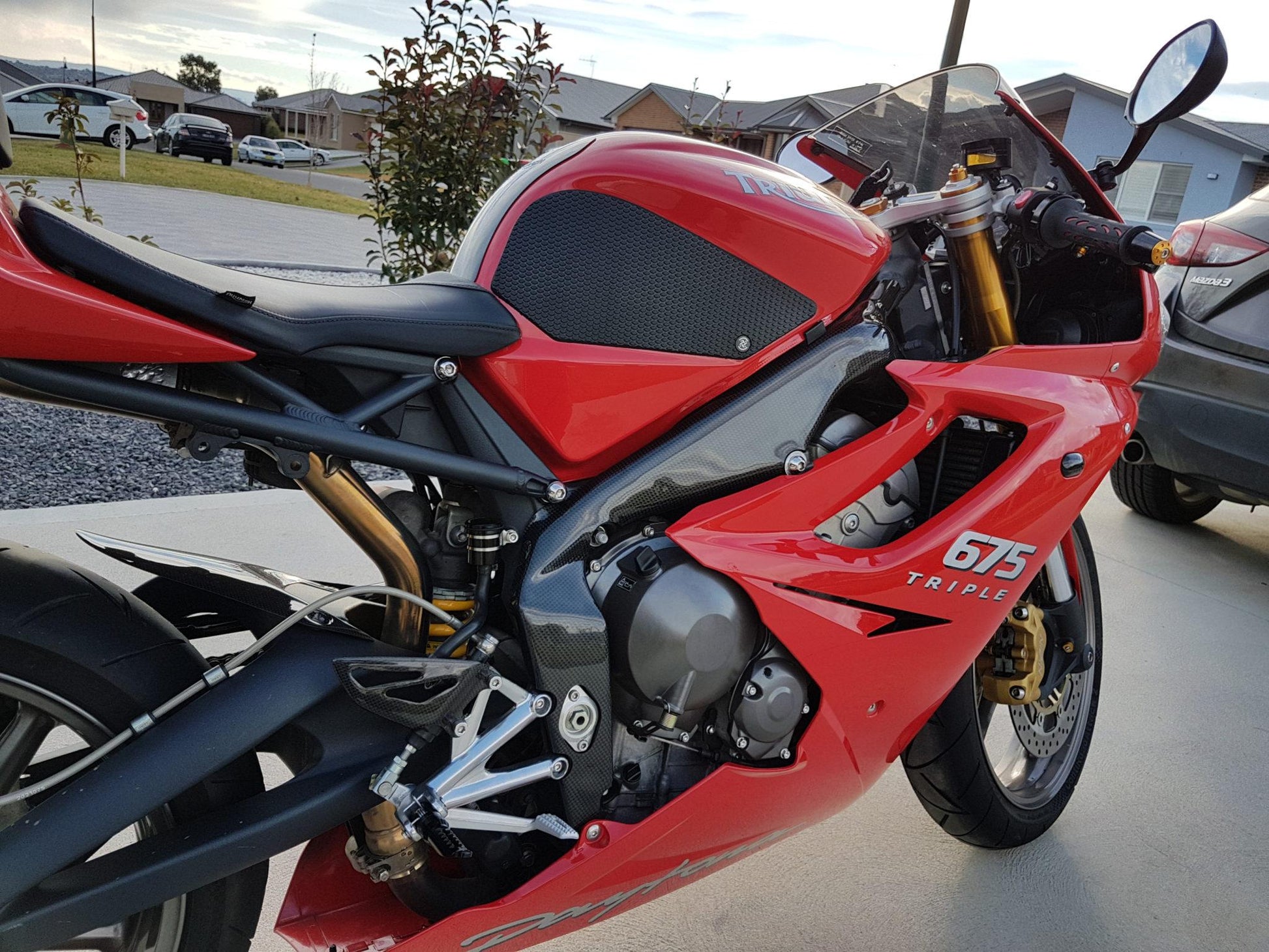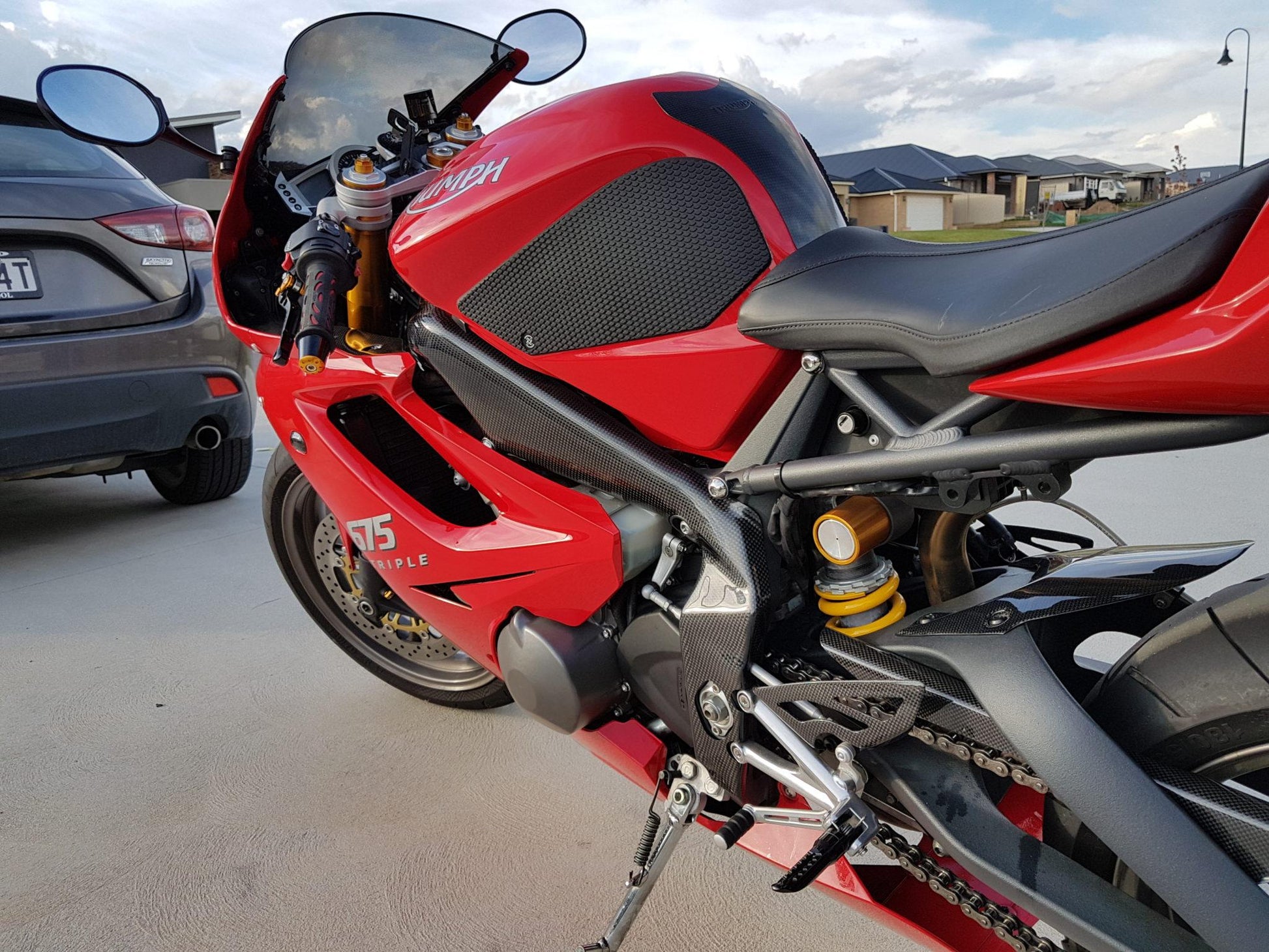 Carbon frame covers for Triumph Daytona 675 by Carbon2Race.