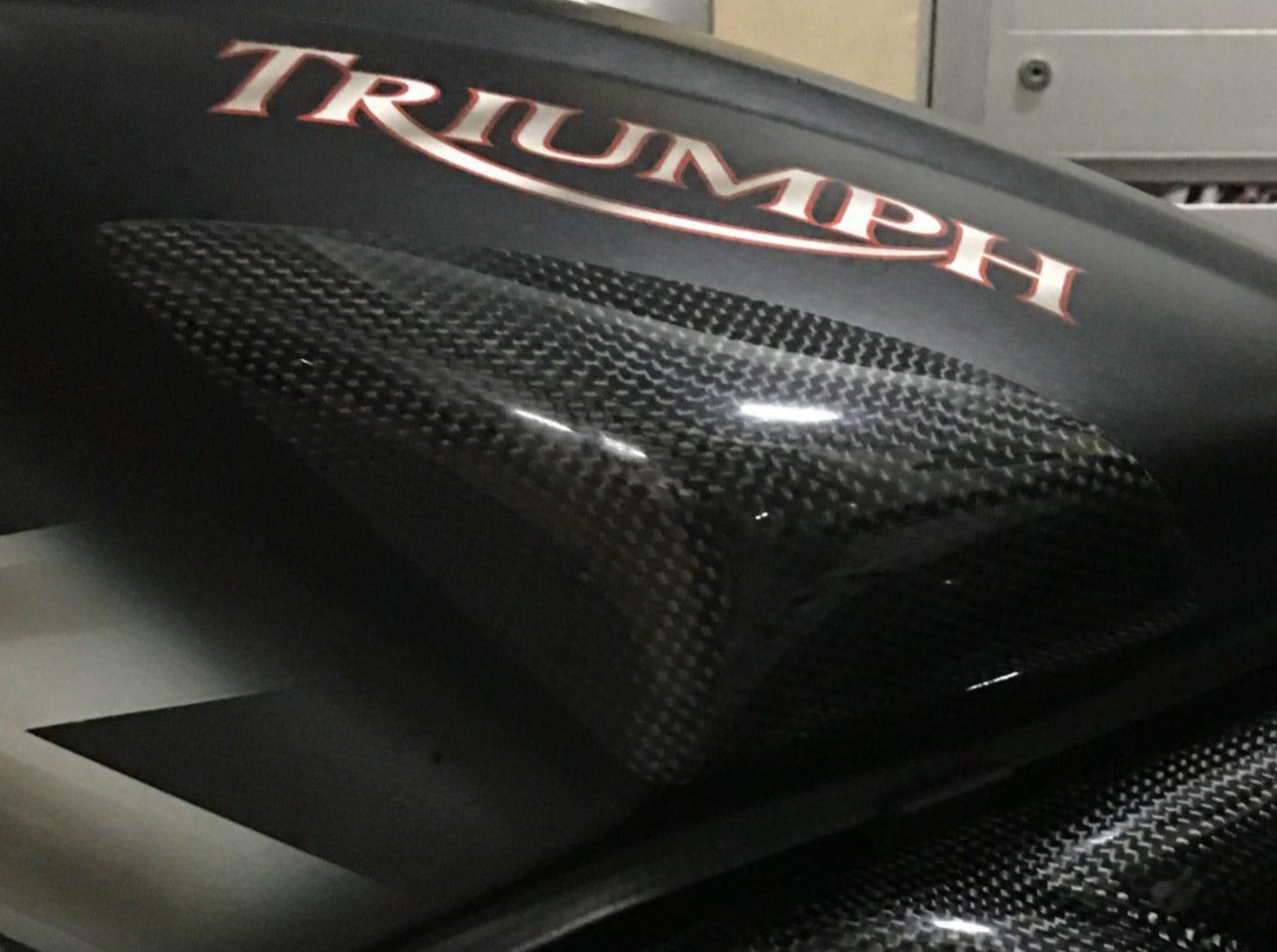 Carbon tank sliders for Triumph Daytona 675 by Carbon2Race.