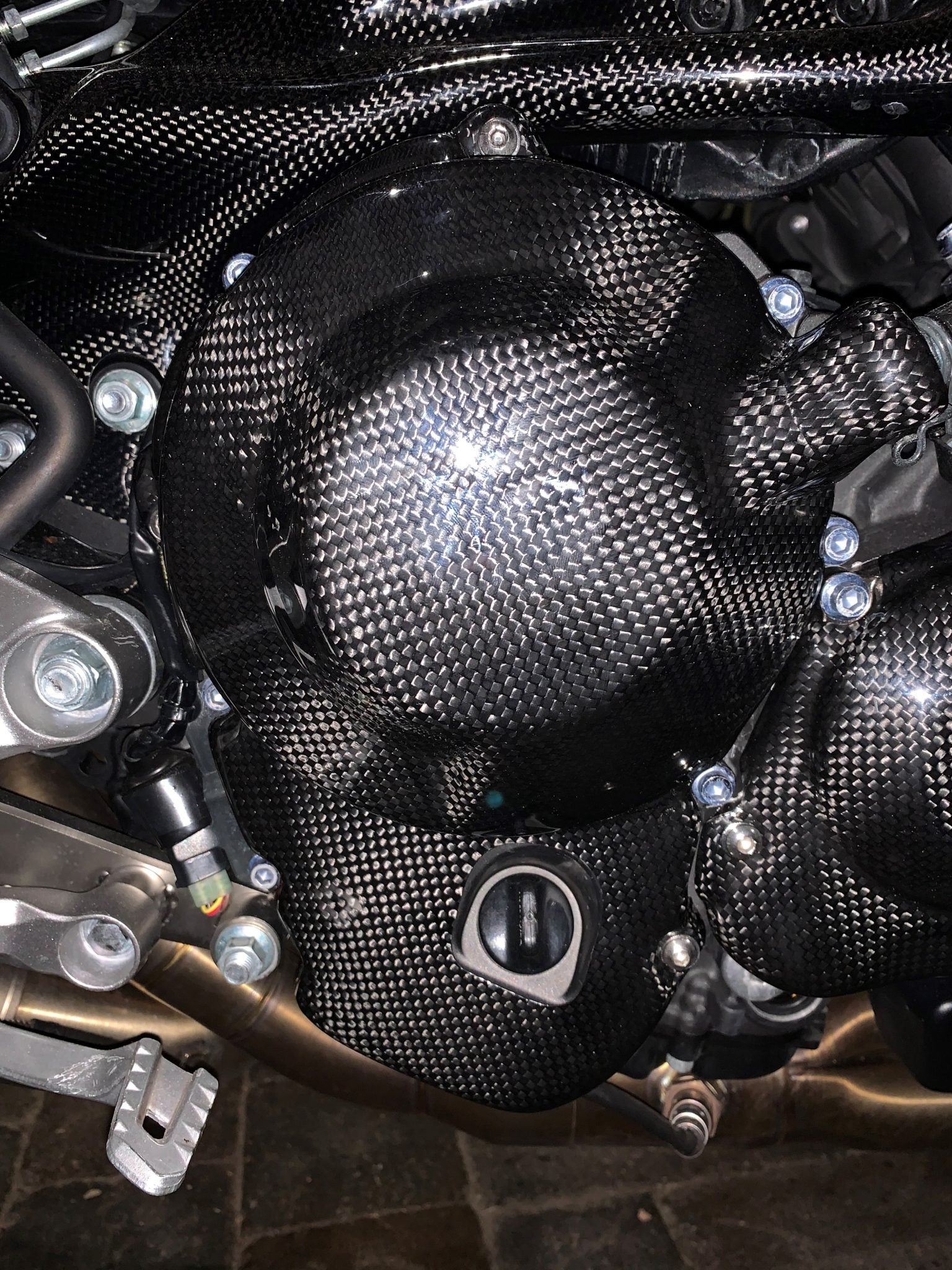 📦 Includes carbon clutch cover, alternator cover, pick up cover, water pump cover and complete mounting kit with instructions