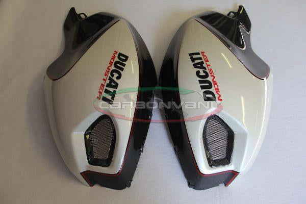 CARBONVANI Ducati Monster 696/796/1100 Carbon Side Tank Panels Kit "White"