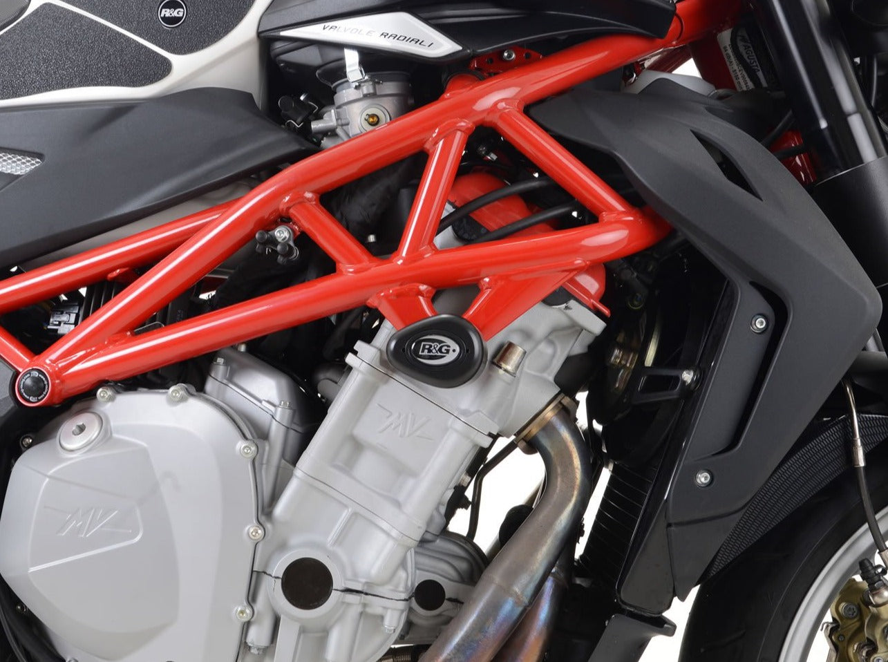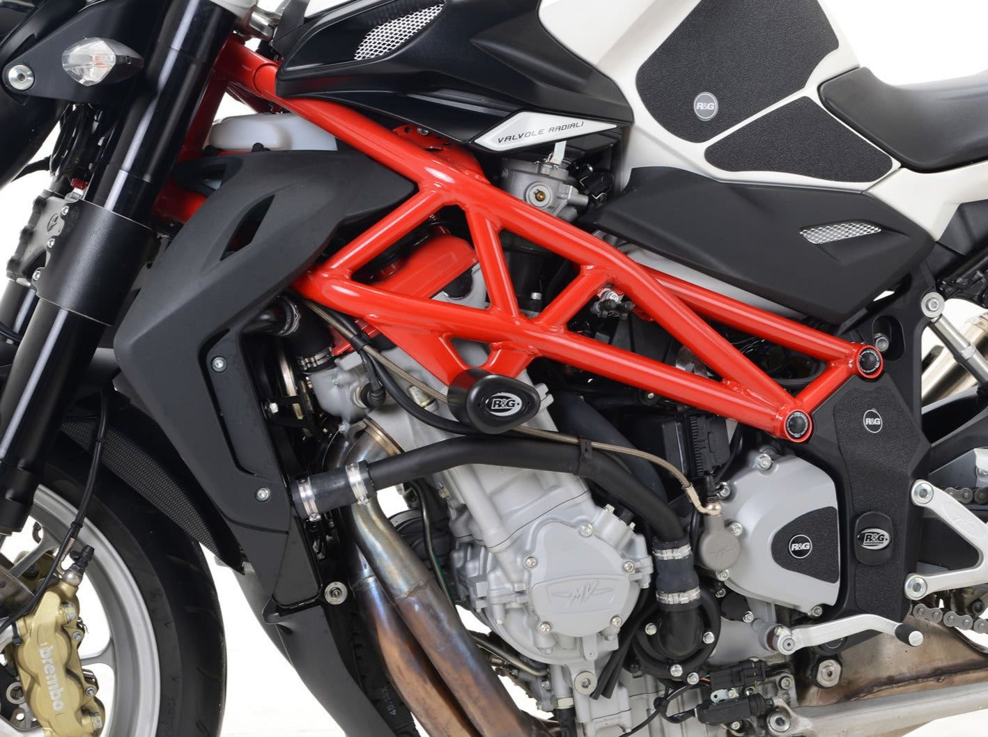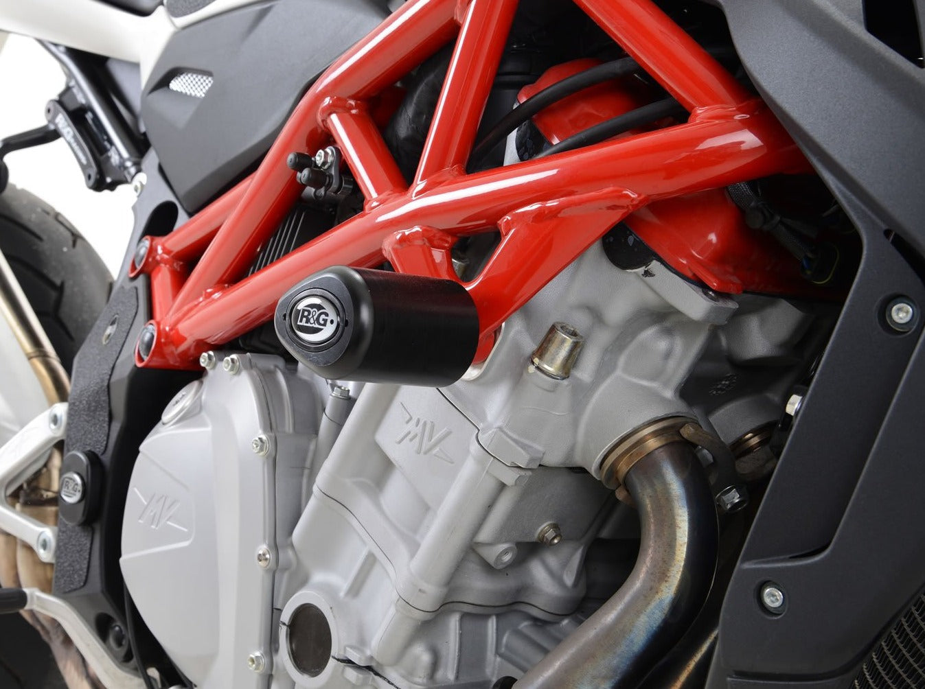 Frame crash protection sliders by R&G Racing for MV Agusta Brutale 1090.