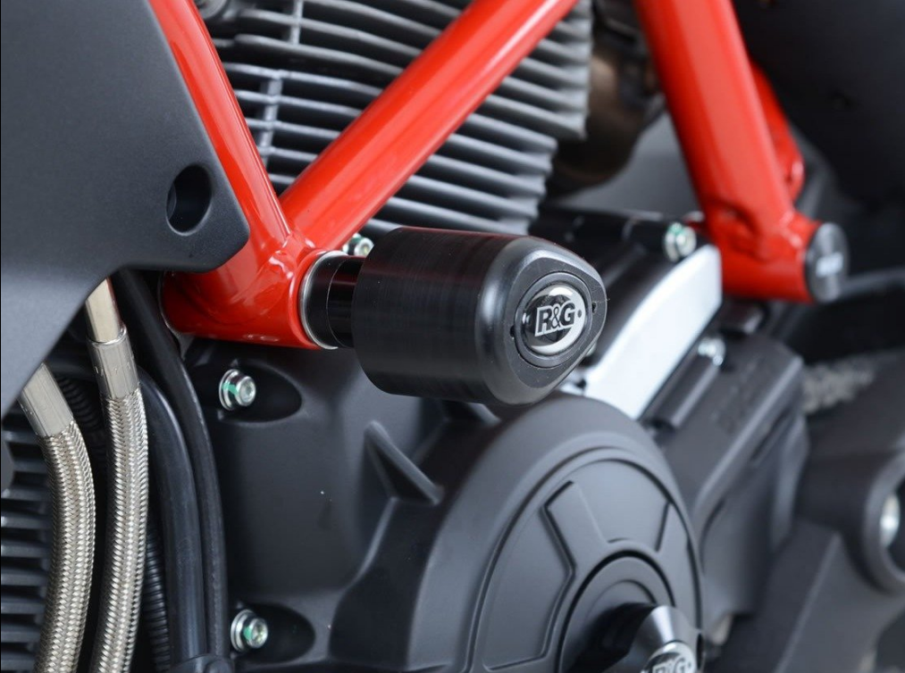 Frame crash protection sliders by R&G Racing for Ducati Monster 797.