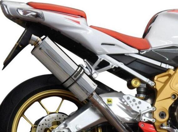 Stubby 14" stainless steel oval muffler for Aprilia RSV 1000 R / Tuono V2 by Delkevic.