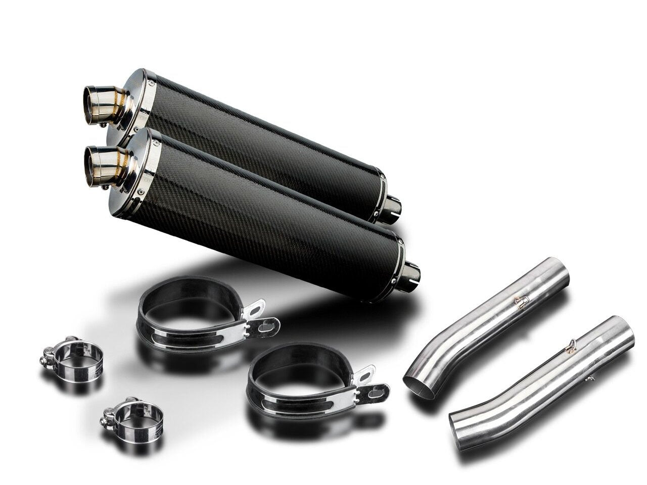 Stubby 18" carbon fiber oval stainless steel muffler for Aprilia RSV 1000 R / Tuono 1000 R by Delkevic.