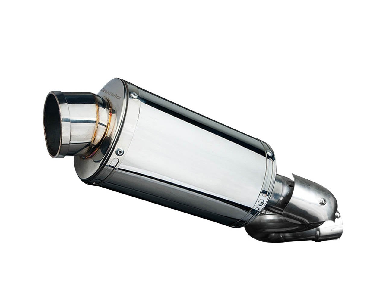 SS70 9" stainless steel oval muffler for Aprilia Tuono V4 1100 by Delkevic.