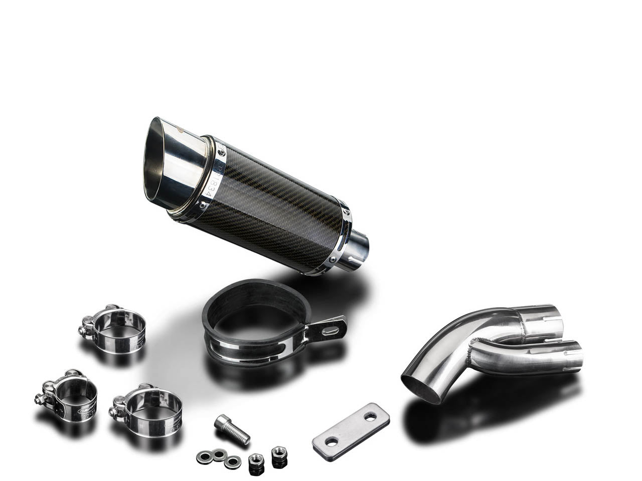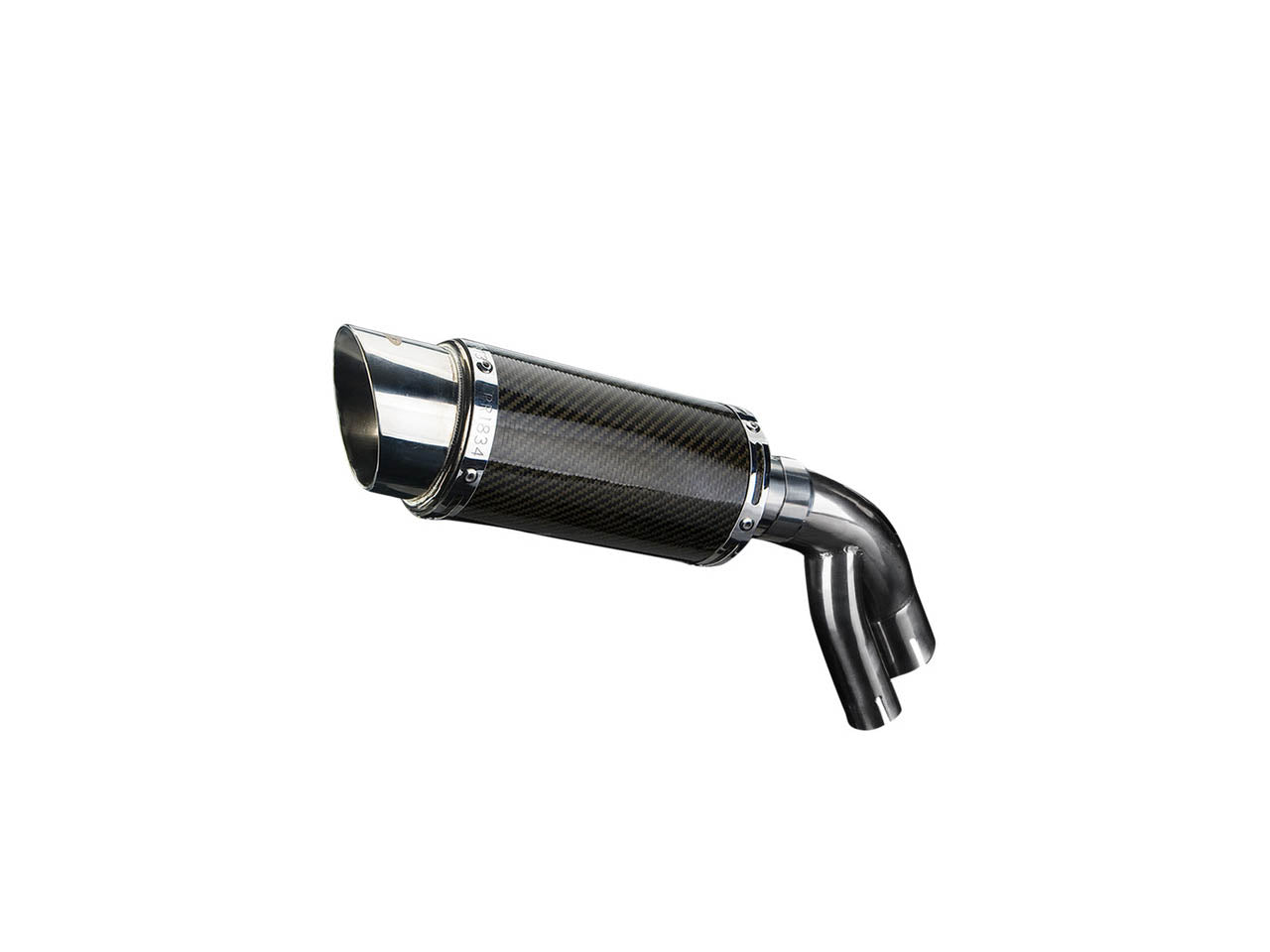 Mini 8" carbon fiber round muffler for BMW S1000XR by Delkevic.