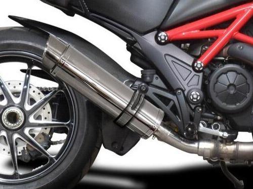 SL10 14" stainless steel round muffler for Ducati Diavel 1200 by Delkevic.
