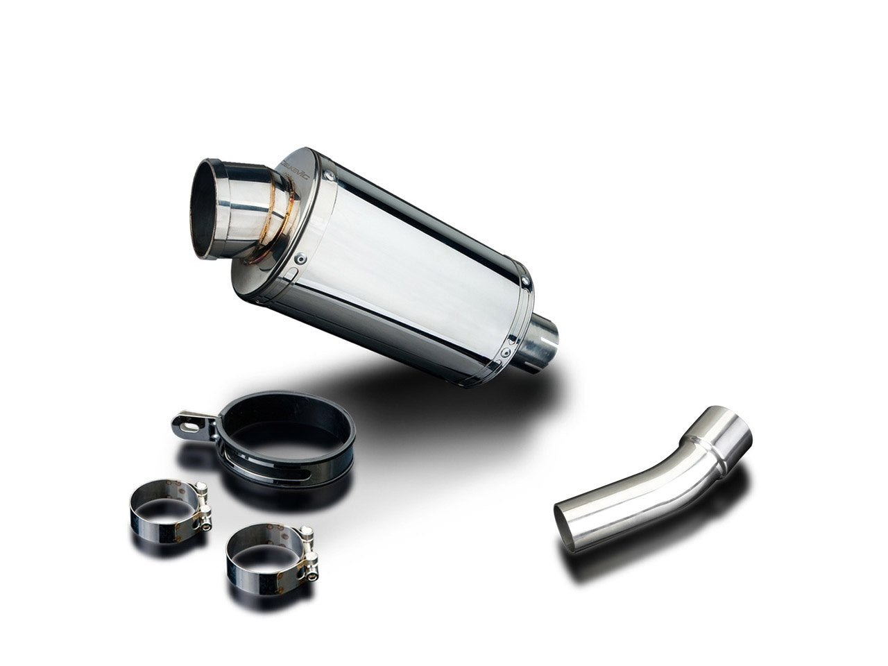 - This SS70 9 inch oval stainless steel muffler is made from high grade 304 stainless steel with the same care and attention to detail that company applies to all Delkevic silencers. It has a big 2 3/4 inch (70mm) outlet and 2 inch (50.8mm) inlet. It is short, open, crisp, and LOUD with the baffle removed but with neighborhood friendly db.