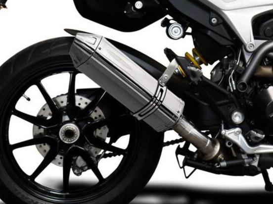 13" stainless steel tri-oval muffler for Ducati Hypermotard 939 / 821 by Delkevic.
