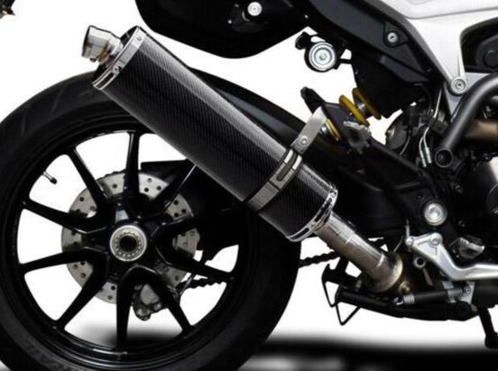 Stubby 18" carbon fiber oval muffler for Ducati Hypermotard 939 / 821 by Delkevic.