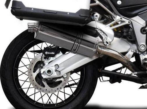 Stubby 14" stainless steel oval muffler for Ducati Multistrada 1200 by Delkevic.