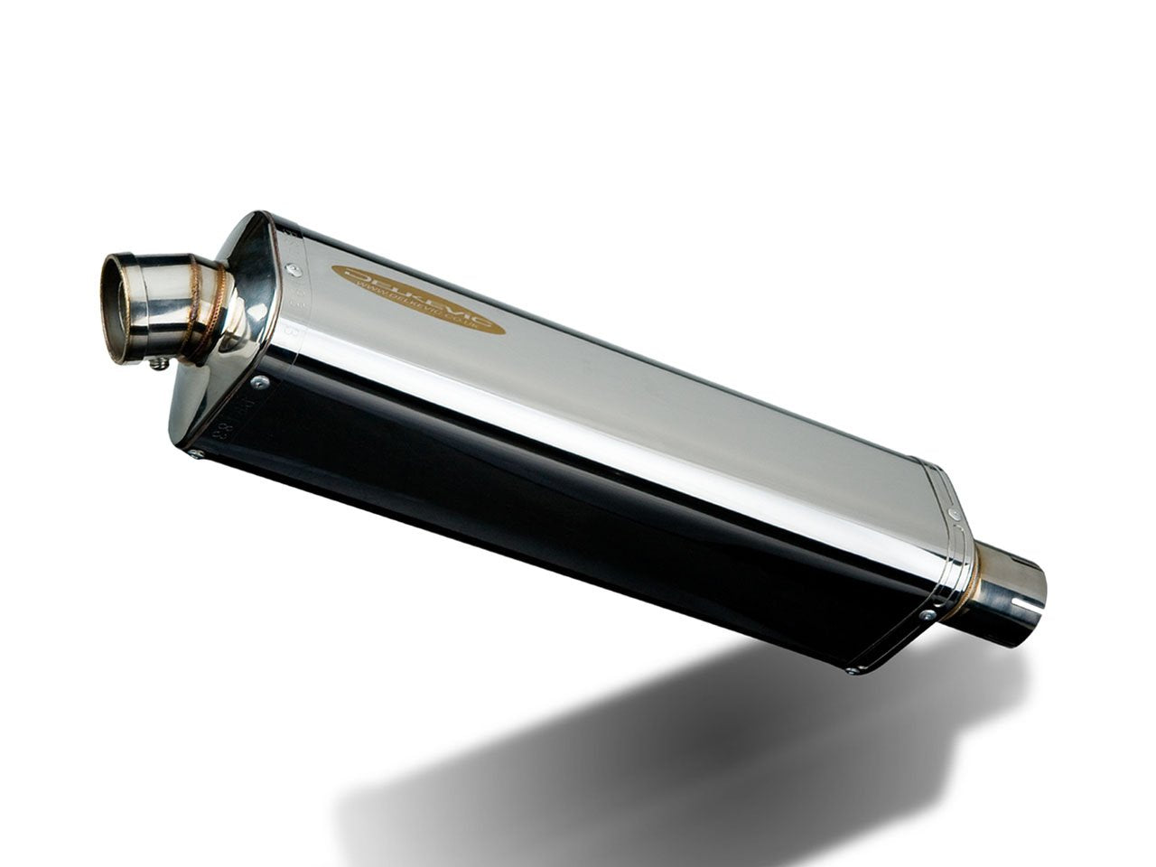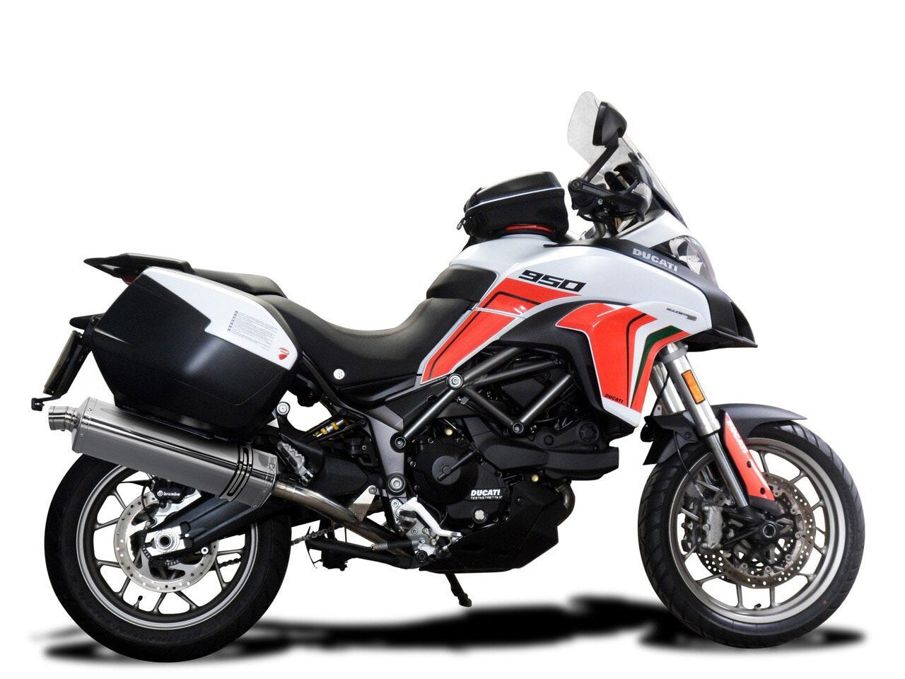 Stubby 17" stainless steel tri-oval muffler for Ducati Multistrada 950 by Delkevic.