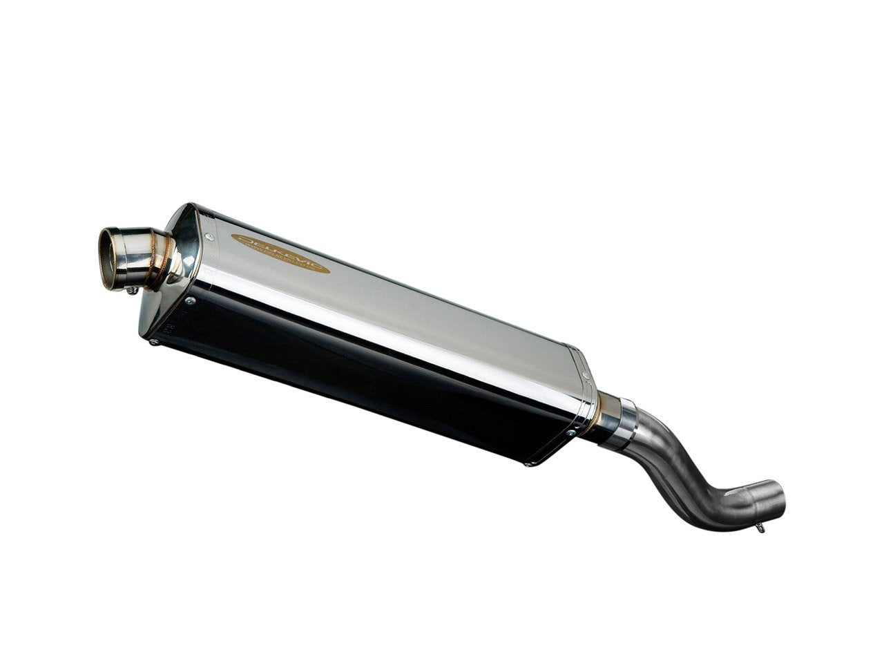Stubby 17" stainless steel tri-oval muffler for Ducati Scrambler 800 models by Delkevic.