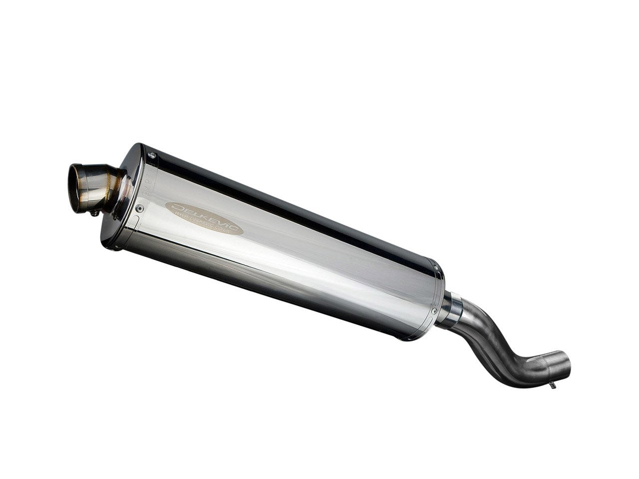 Stubby 18" stainless steel oval muffler for Ducati Scrambler 800 models by Delkevic.