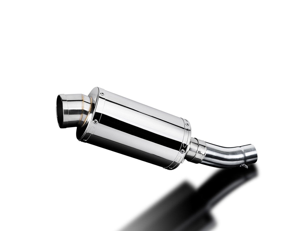 - This SS70 9 inch oval stainless steel muffler is made from high grade 304 stainless steel with the same care and attention to detail that company applies to all Delkevic silencers. It has a big 2 3/4 inch (70mm) outlet and 2 inch (50.8mm) inlet. It is short, open, crisp, and LOUD with the baffle removed but with neighborhood friendly db.