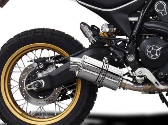 SS70 9" stainless steel oval muffler for Ducati Scrambler 800 Desert Sled by Delkevic.