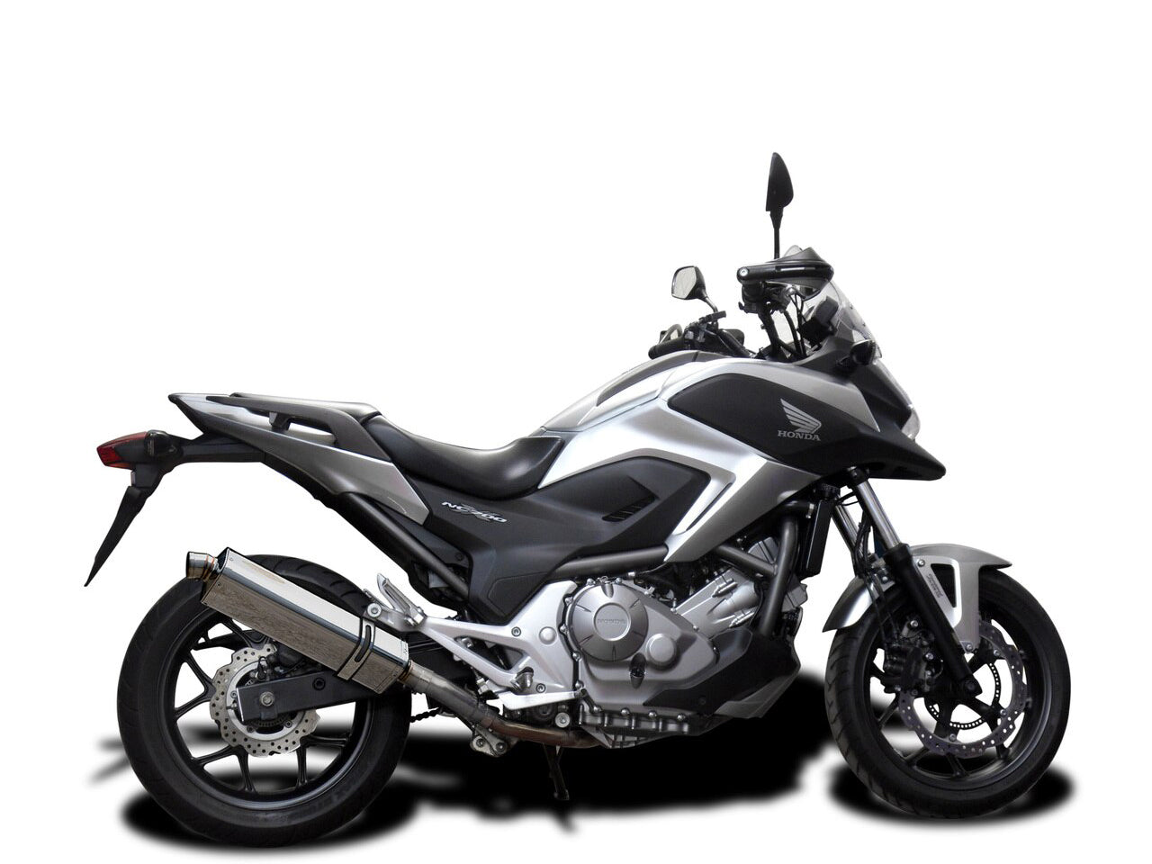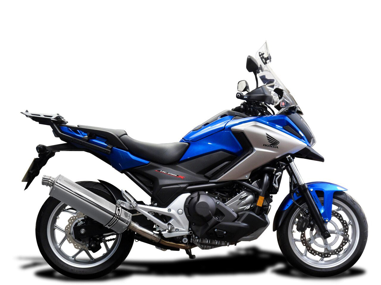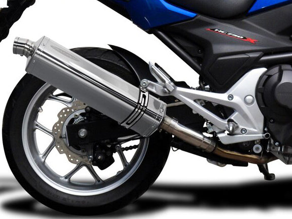 Stubby 17" stainless steel tri-oval muffler for Honda NC700X / NC700XD / NC700S / NC700XDH / NC750X by Delkevic.