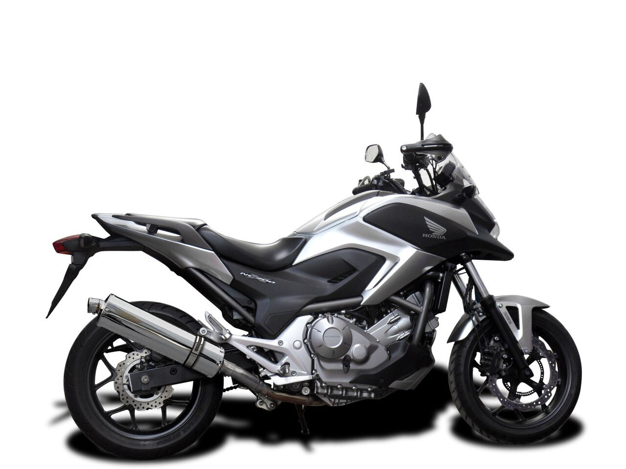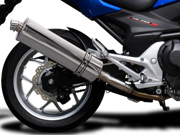 Stubby 18" stainless steel oval muffler for Honda NC700X / NC700XD / NC700S / NC700XDH / NC750X by Delkevic.
