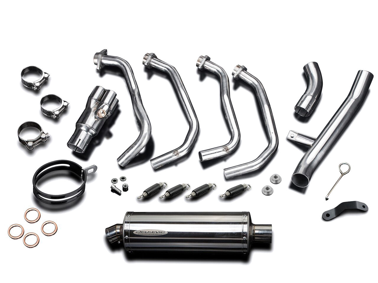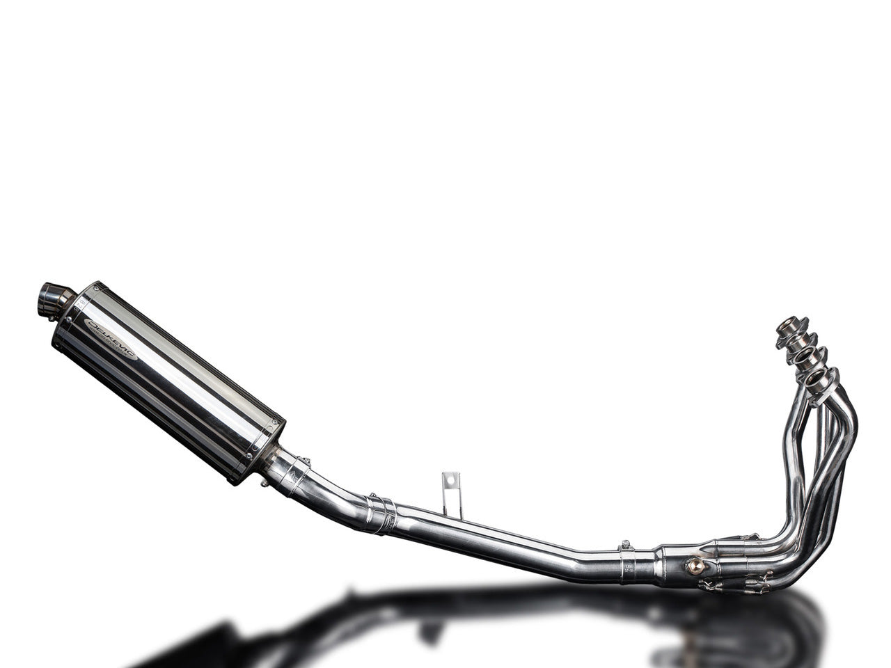 Complete exhaust system with Stubby 14" oval muffler and stainless steel 4 to 1 headers for Kawasaki Z900 by Delkevic.