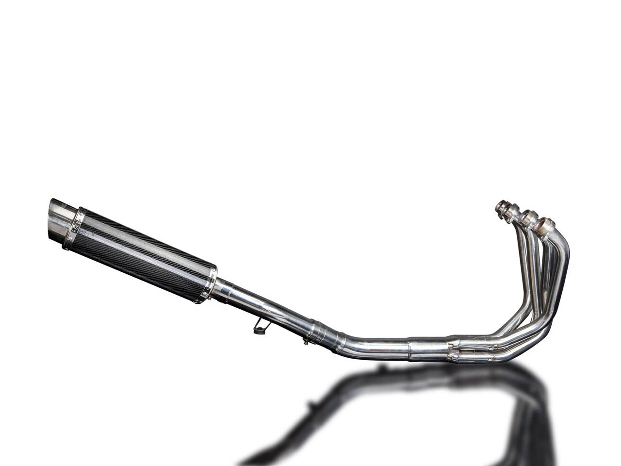 Complete exhaust system with DL10 14" carbon fiber round muffler and stainless steel 4-1 headers for Suzuki GSX650F by Delkevic