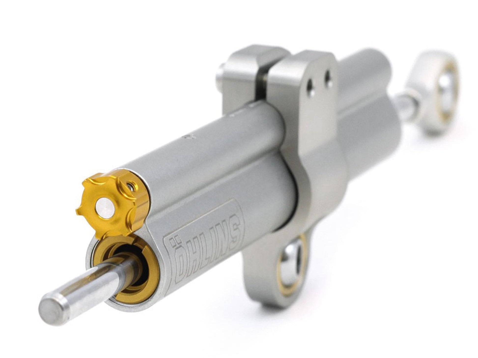 OHLINS 68 mm steering damper with CNC RACING mounting kit for Ducati Monster 950.