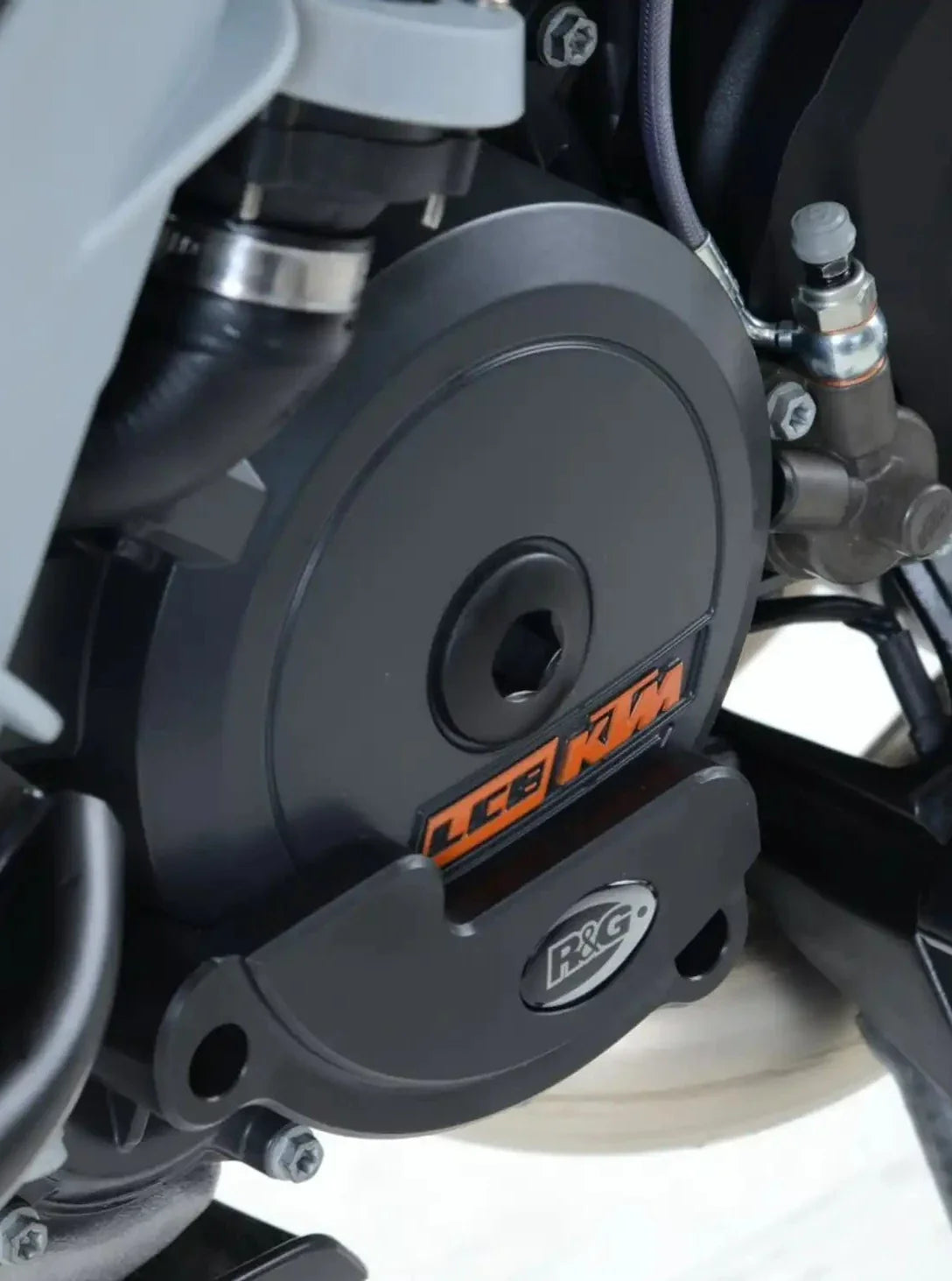 Engine case slider by R&G Racing for KTM models.