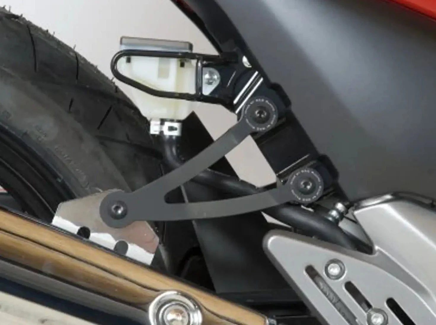 This exhaust hanger enables the removal of the pillion pegs for that race bike look, whilst also allowing for your exhaust to be properly supported.