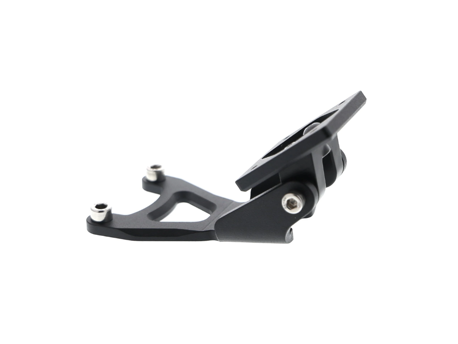 Attaches to the ignition switch cover panel. Adjustable horizontal pivot for easy viewing. Puts the device within the rider's peripheral vision for easy access on a ride.