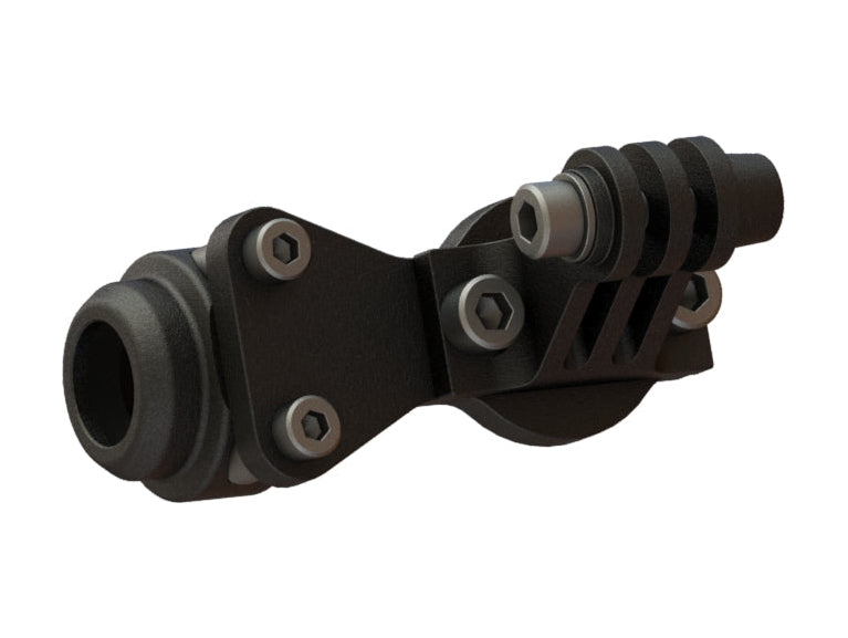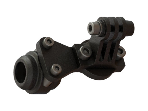 Anodized black finished aluminium bracket with precision designed action camera mounting point.