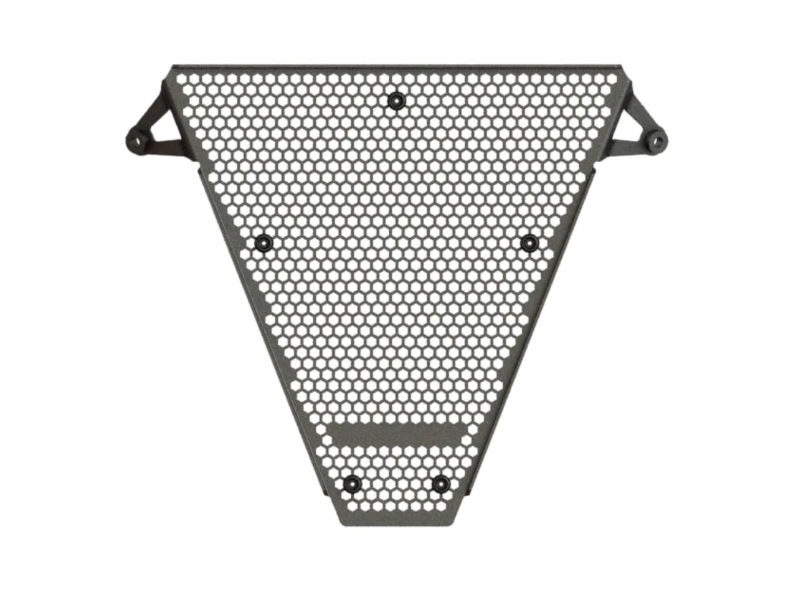 The elegantly designed matrix is pierced with hexagonal holes to optimize airflow whilst providing maximum protection from road debris.