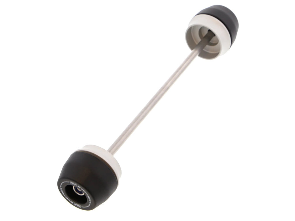 The nylon bobbin, sitting on top of the aluminum core, protrudes either side from the expensive swing arm to be the first to receive impact in any crash. With EP’s innovative design, the nylon can rotate with the impact and reduce stress and damage on the motorcycle. The protector heads are mounted to the rear wheel by a strong roll threaded stainless steel spindle rod