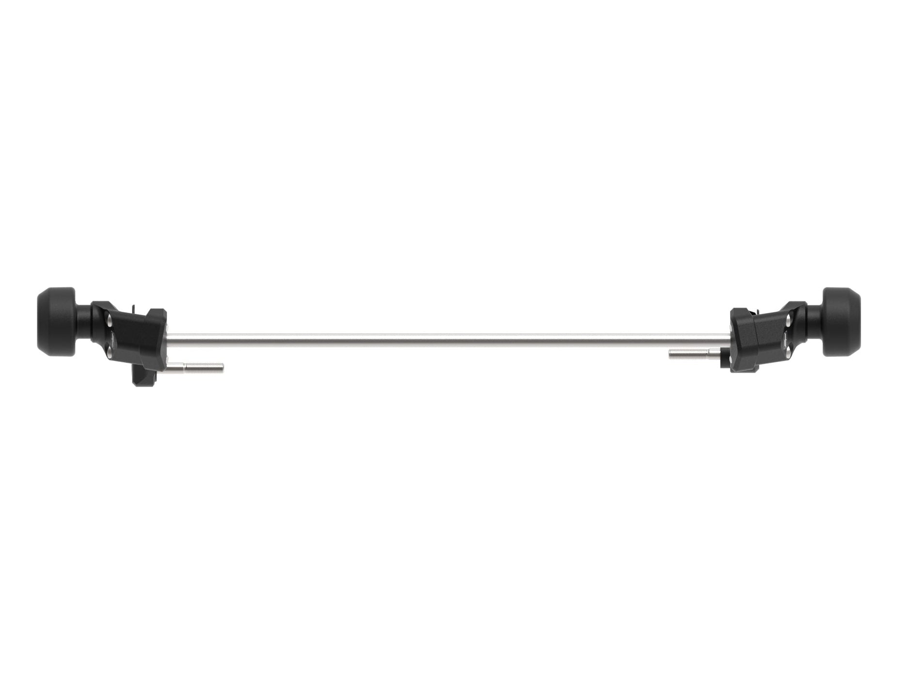 The dual load system secret is the cross assembly shaft that increases the rigidity and creates an integral connection across the motorcycles main engine mounting points.