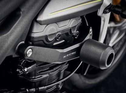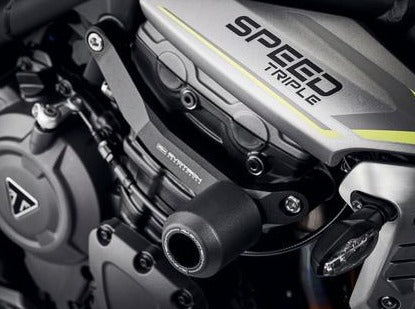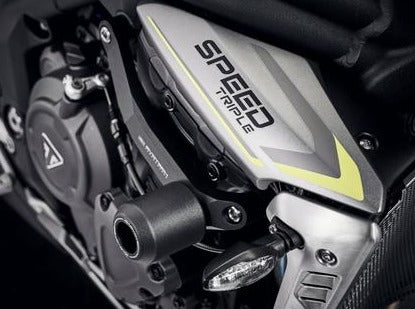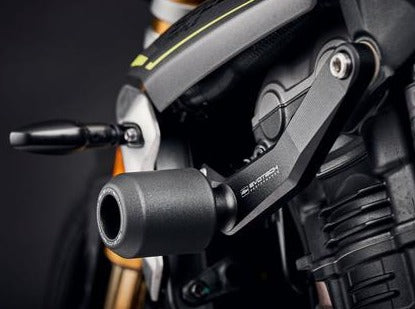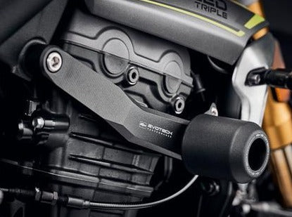 Frame crash protection sliders by Evotech Performance for Triumph Speed Triple 1200 models.