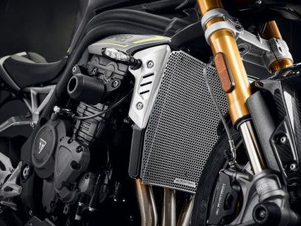 Radiator guard by Evotech Performance for Triumph Speed Triple 1200 models.