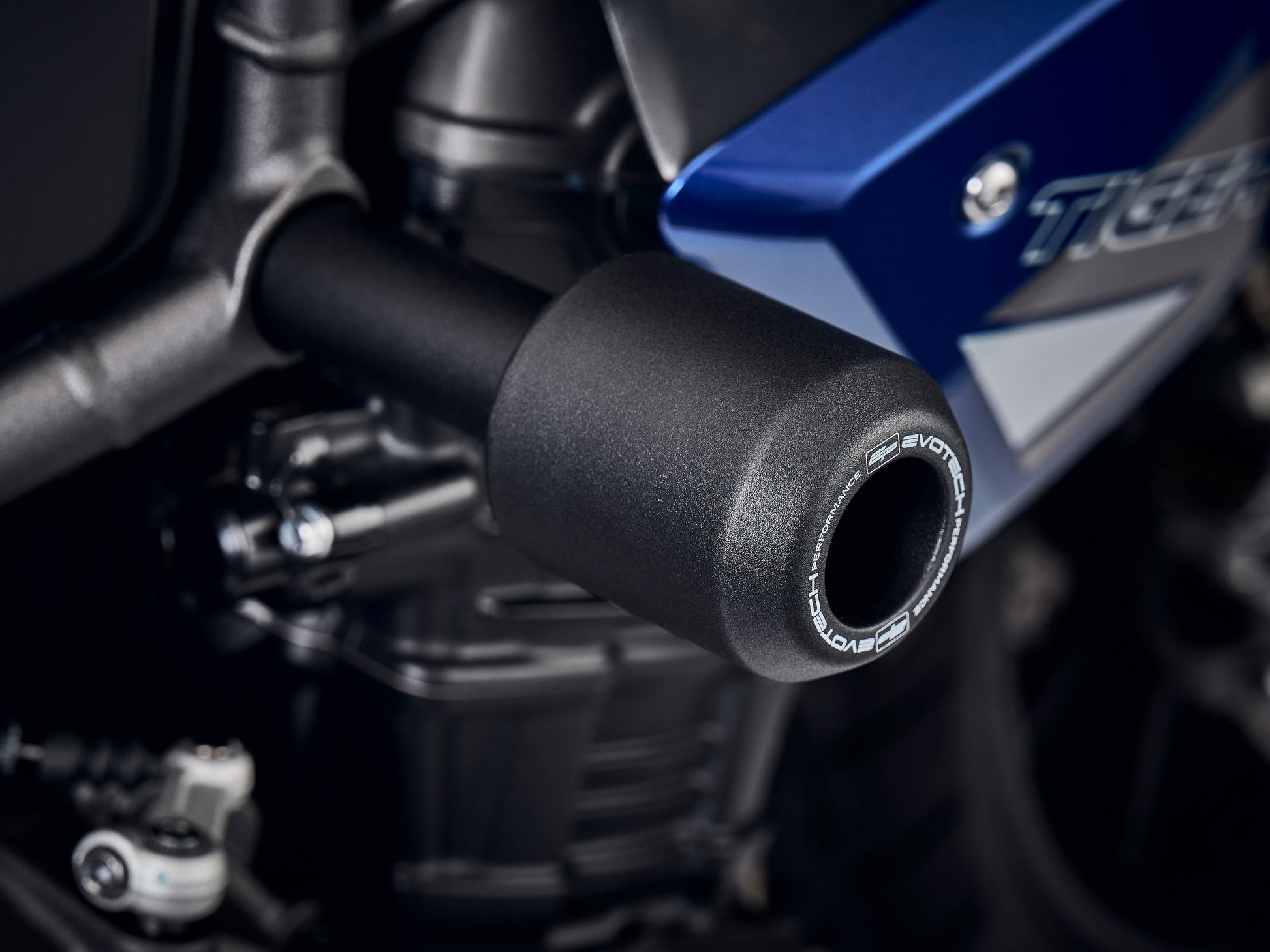 Frame crash protection sliders by Evotech Performance for Triumph Tiger 1200 GT / Tiger 1200 GT Pro / Tiger 1200 Rally Pro motorcycles.