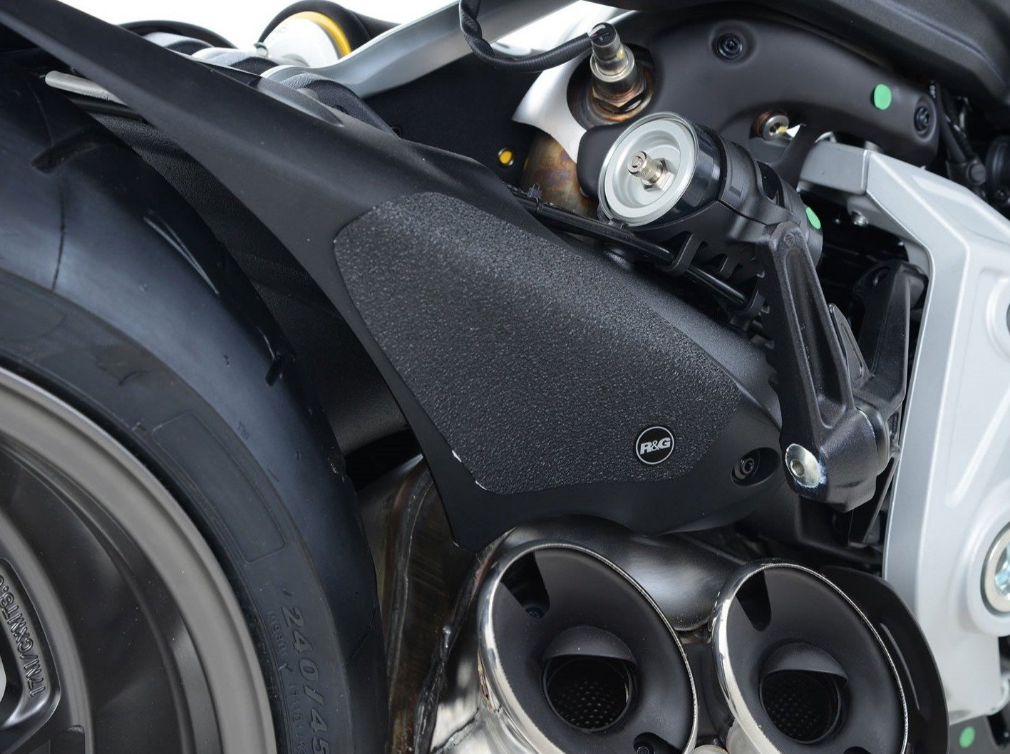 The unique R&G texture was specifically designed to be durable, providing the rider with a buffer between his boot on the exposed areas of the swingarm which can (on occasion) come into contact with each other during cornering causing wear and unwanted damage to the swingarm or boots (both expensive to fix!).