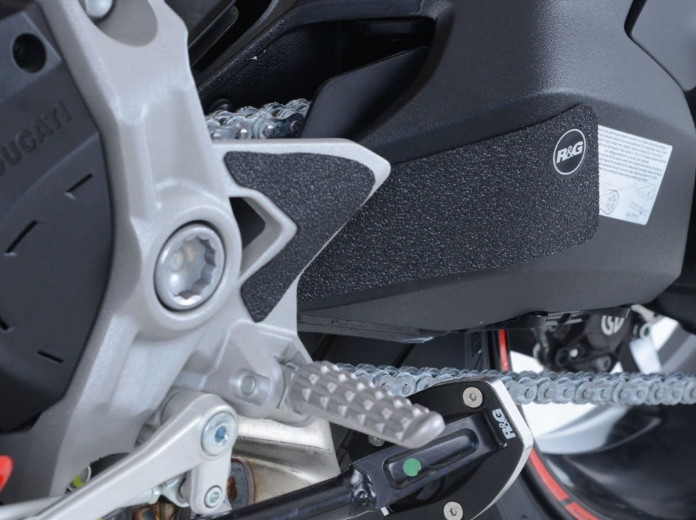 The unique R&G texture was specifically designed to be durable, providing the rider with a buffer between his boot on the exposed areas of the swingarm which can (on occasion) come into contact with each other during cornering causing wear and unwanted damage to the swingarm or boots (both expensive to fix!).