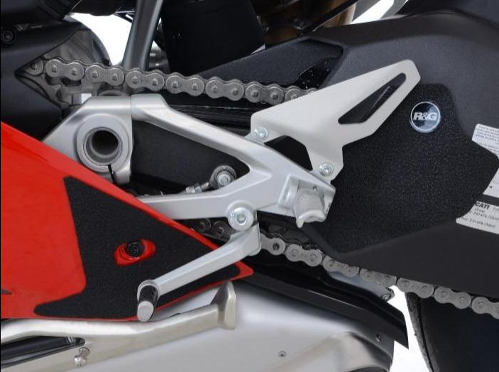 The unique R&G texture was specifically designed to be durable, providing the rider with a buffer between his boot on the exposed areas of the swingarm which can (on occasion) come into contact with each other during cornering causing wear and unwanted damage to the swingarm or boots (both expensive to fix!).
