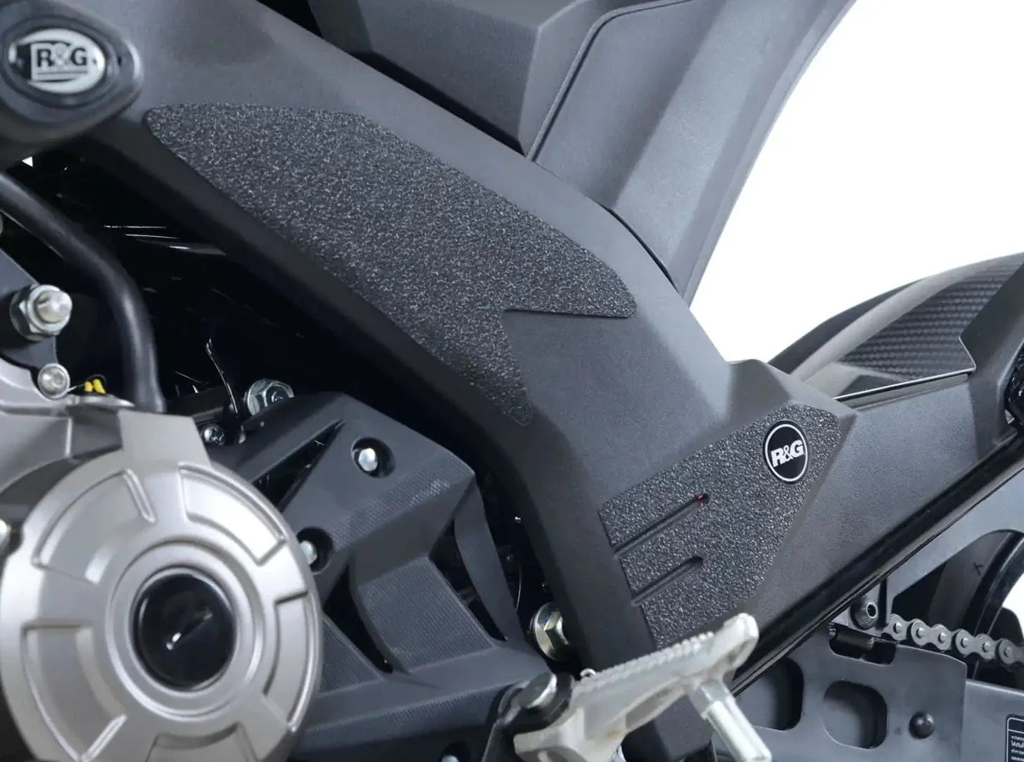 The unique R&G texture was specifically designed to be durable, providing the rider with a buffer between his boot on the exposed areas of the swingarm which can (on occasion) come into contact with each other during cornering causing wear and unwanted damage to the swingarm or boots (both expensive to fix!).