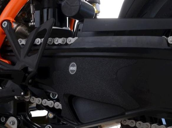 The unique R&G texture was specifically designed to be durable, providing the rider with a buffer between his boot on the exposed areas of the swingarm which can (on occasion) come into contact with each other during cornering causing wear and unwanted damage to the swingarm or boots (both expensive to fix!).