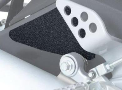 The unique R&G texture was specifically designed to be durable, providing the rider with a buffer between his boot on the exposed areas of the swingarm which can (on occasion) come into contact with each other during cornering causing wear and unwanted damage to the swingarm or boots (both expensive to fix!).