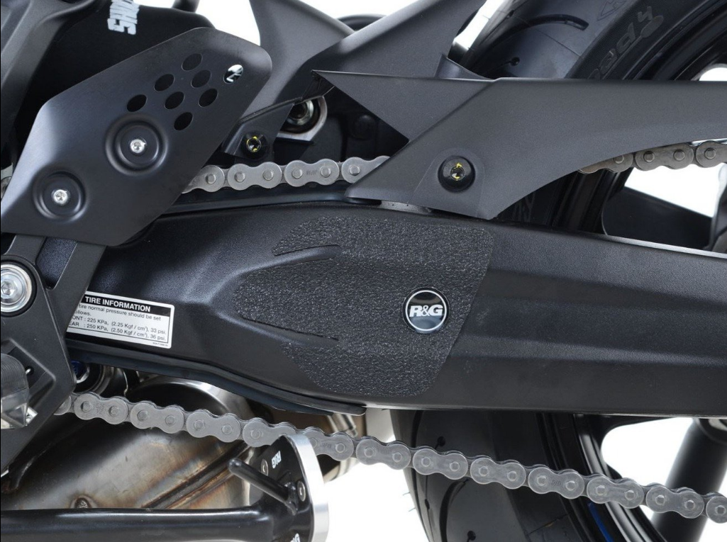 The unique R&G texture was specifically designed to be durable, providing the rider with a buffer between his boot on the exposed areas of the swingarm which can (on occasion) come into contact with each other during cornering causing wear and unwanted damage to the swingarm or boots (both expensive to fix!).