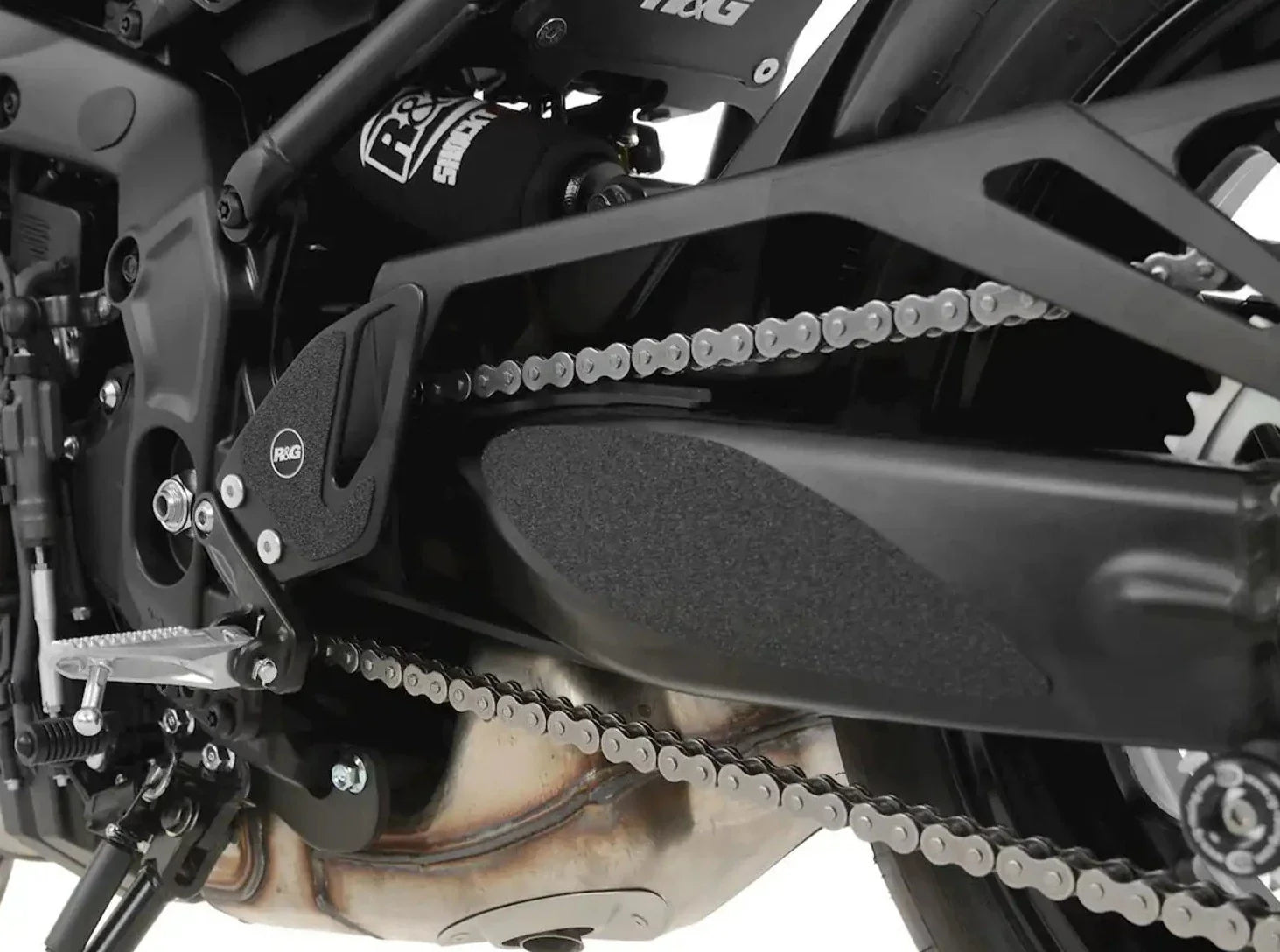 The unique R&G texture was specifically designed to be durable, providing the rider with a buffer between his boot on the exposed areas of the swingarm which can (on occasion) come into contact with each other during cornering causing wear and unwanted damage to the swingarm or boots (both expensive to fix!).
